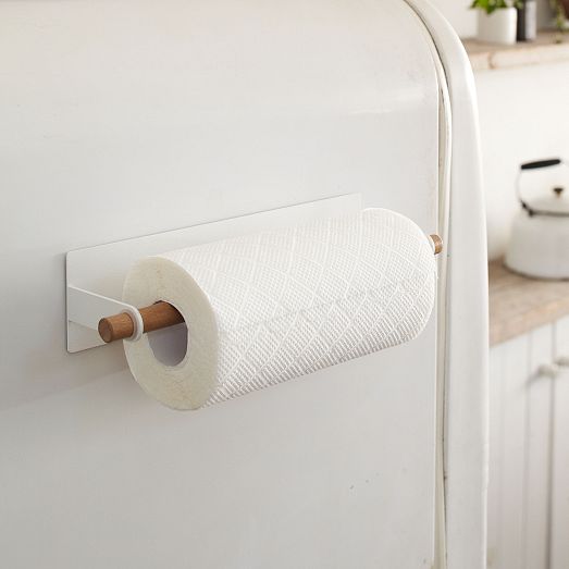 - Simply place the magnetic base of this paper towel holder on the refrigerator, pop in a paper towel roll, and enjoy the newfound counter space.