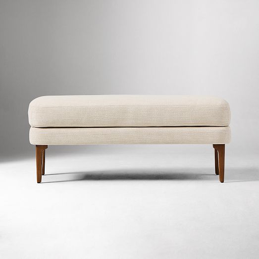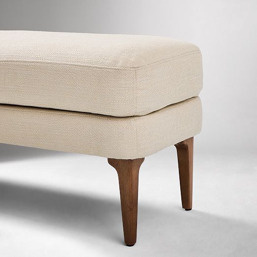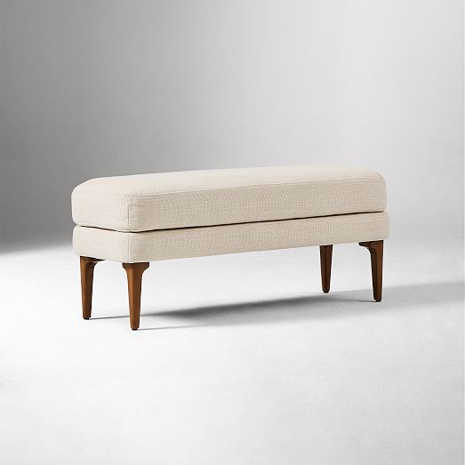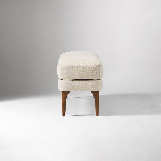 42" bench shown in Performance Basket Slub, Sand with Cool Walnut legs