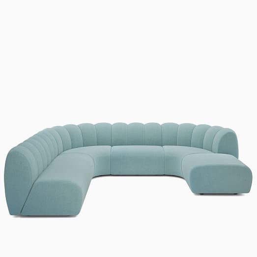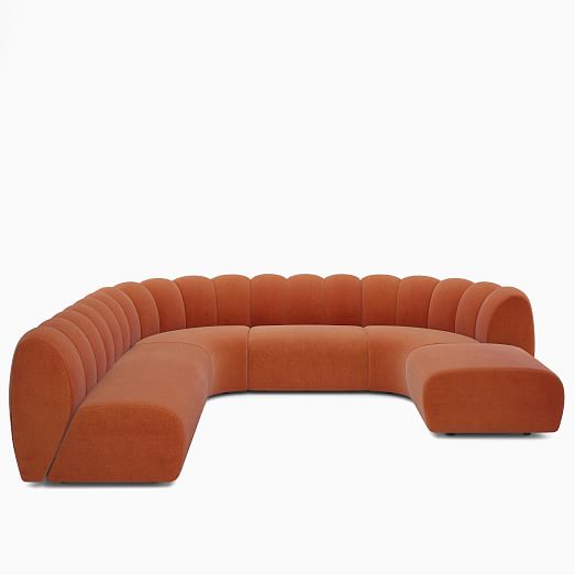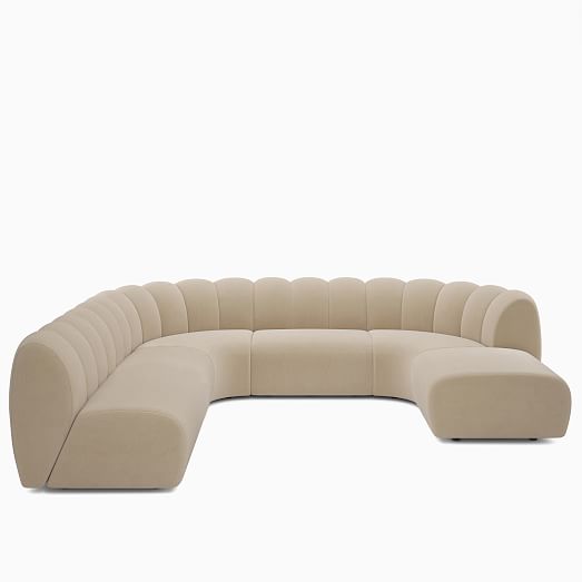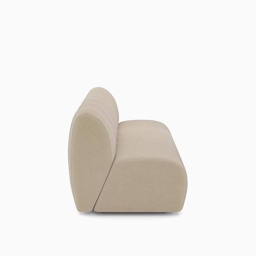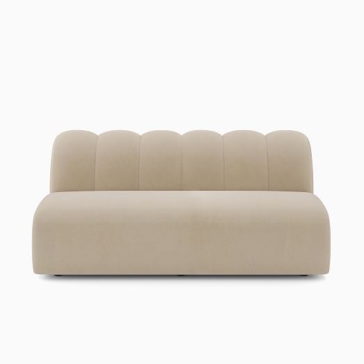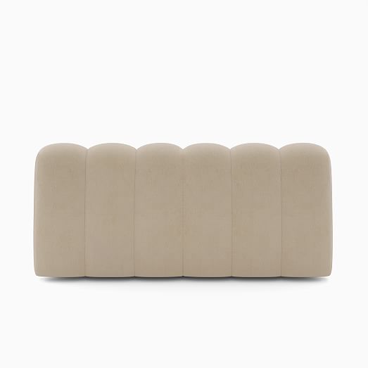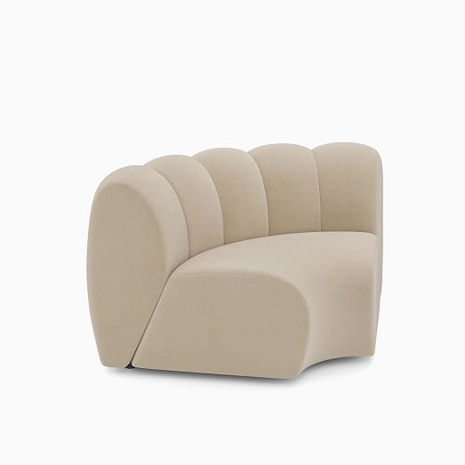 - Its '70s inspired plush form with channel tufting.