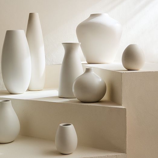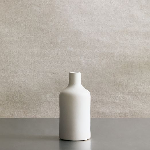 Pure White Ceramic Vase, Bottle, 9 Inches