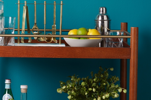 An at–the–ready bar cart gives guests a can't–miss–it destination and all the essentials for touching up their own drinks, lightening your load a bit as host. Make sure you have the right bar tools + mixers stocked so guests won't have to go looking for anything themselves.