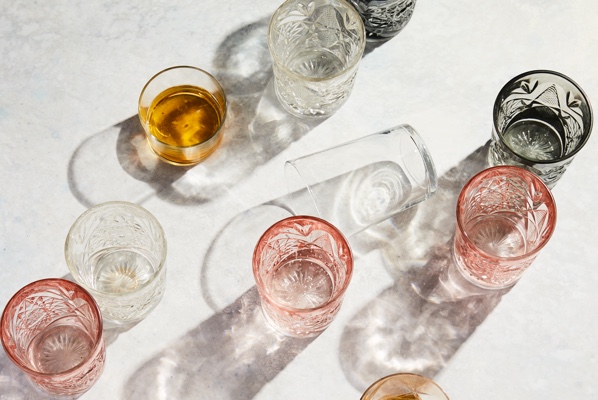 You don't have to register for every type of bar glass. Choose one or two that has your favorite cocktails covered, and mix it in with your other stemware. (Don't fall victim to a boring bar cabinet! An assortment of mixed glassware keeps things interesting.)