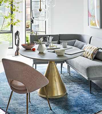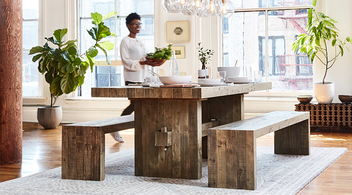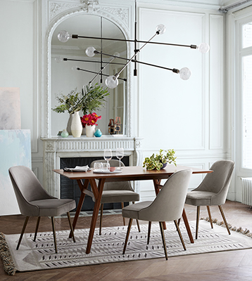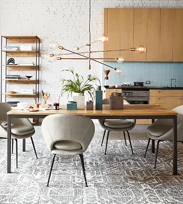 - Allow at least 36" from the edge of your table to the edge of the rug, for room to pull out chairs. (Most dining tables will need a rug that's at least 8' wide.)