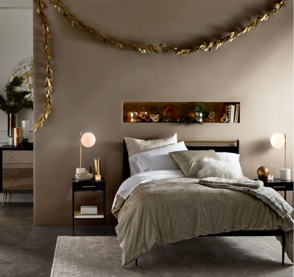 In the bedroom, hang a wreath—fragrant or faux—or drape a garland above your bed or bureau. Add sparkling Christmas lights to garlands or use them to outline windows. Balsam-scented candles will add romantic, seasonal ambience.