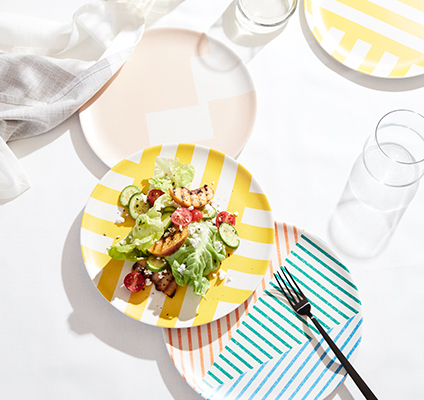 The spirit of summer is zero stress so entertaining should be just that, from backyard BBQs to impromptu patio cocktails. Serve up style with lightweight, unbreakable dinnerware that's dishwasher safe. Mix + match patterns and colors—the more, the merrier!