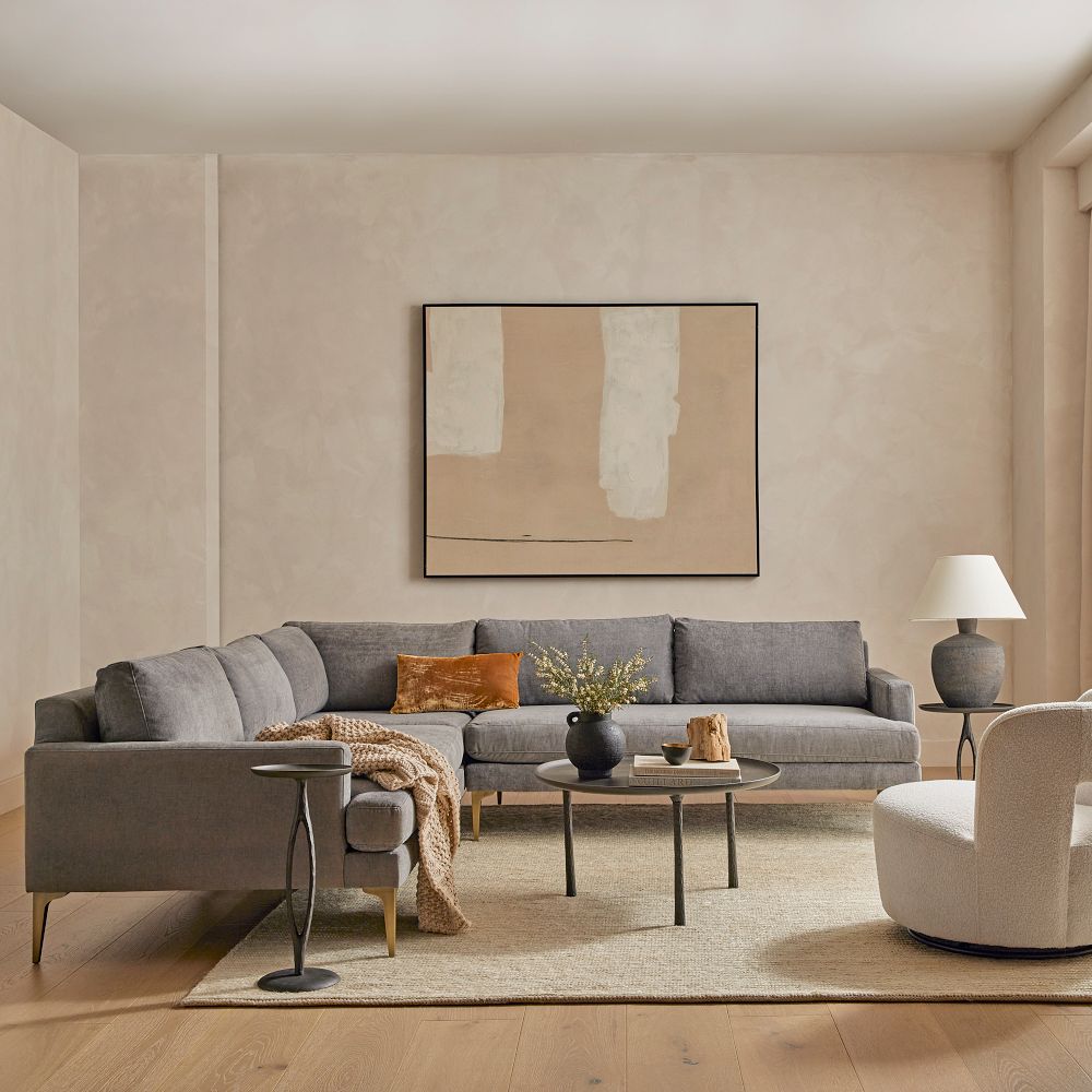 With its modern form, extra-deep seat and crisp tailoring, our spacious Andes Sectional has serious presence but feels airy and light thanks to the thin frame and cast metal legs. Its durable frame comes in your choice of width, depth and leg finish.
