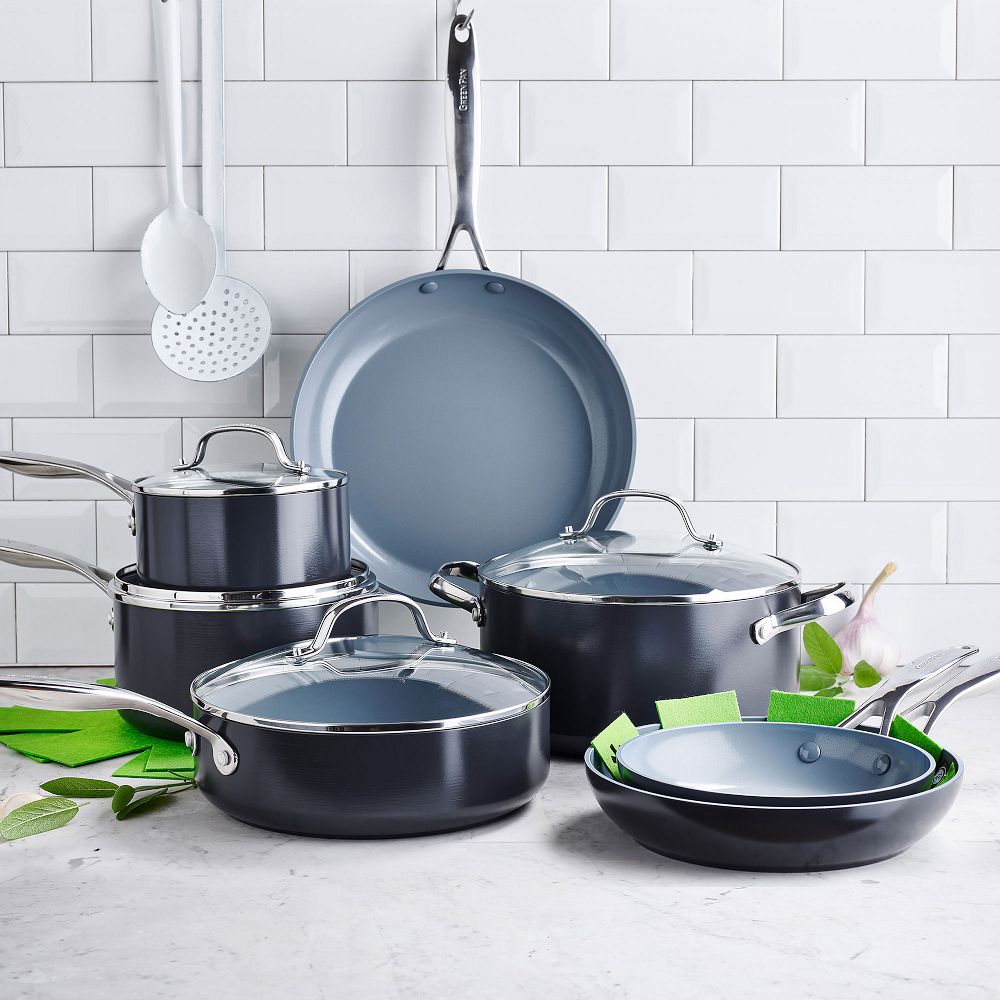 Designed and curated for modern home cooks, this 11-piece set of GreenPan™ pots and pans has an anodized ceramic coating that allows for maximum strength and scratch resistance. With a copper core and innovative magnetic heating, you get superior induction efficiency and cooking results on all stovetops.