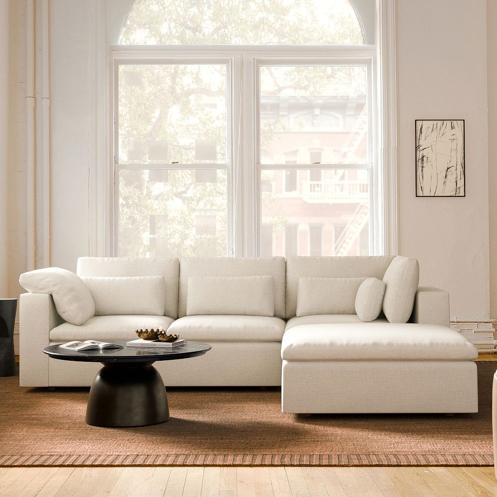 Harmony is our most comfortable sectional ever, thanks to its deep seat, plush cushions and go-anywhere lumbar and throw pillows. This modular version creates your dream sectional today but can be used flexibly down the road. Each has reinforced joinery and is assembled in the USA.