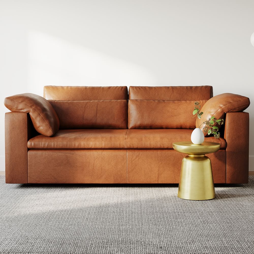 Harmony is our most comfortable sofa ever, thanks to its deep seat, plush cushions and go-anywhere lumbar and throw pillows. This modular version is a dream sofa today but can be paired with an ottoman or combined with select add-on pieces down the road. Each has reinforced joinery and is covered in your choice of leather.