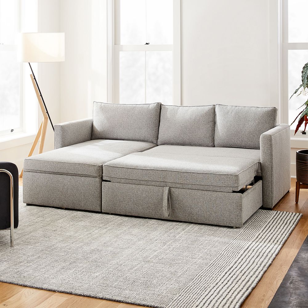 Our designers created the Harris Collection with one thing in mind: versatility. This guest-ready, pop-up sleeper sectional features neat, tailored details and a slim, streamlined frame with an extra handy storage chaise. Each sectional is assembled in the USA in your choice of color and fabric.