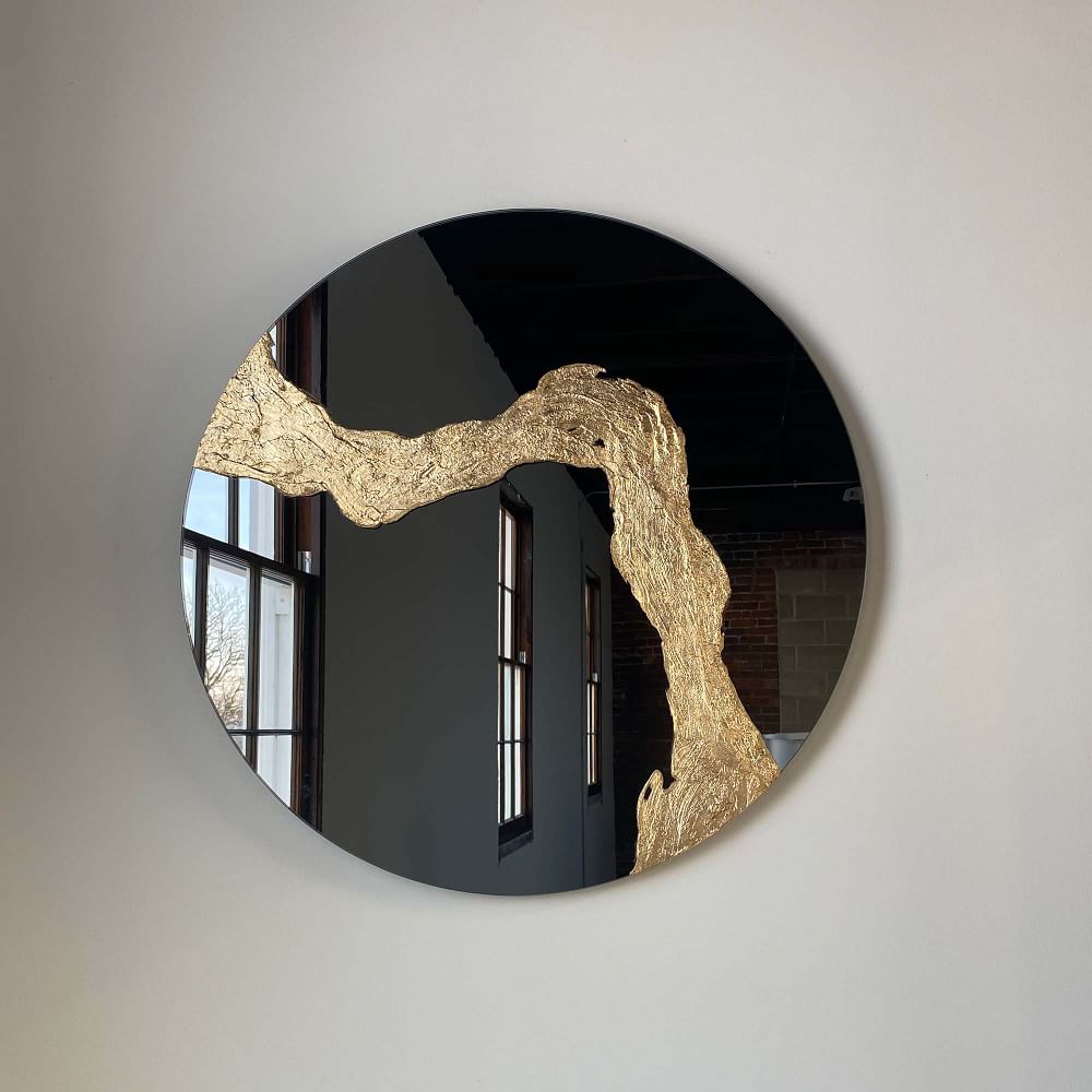Based in Cedar Rapids, IA, Candice Luter creates one-of-a-kind designs using remnant scraps of wood and fabric. In a handsome smoky tint, the Glissando Mirror is finished with a hand-textured abstract design for an eye-catching addition in an entryway or living room.