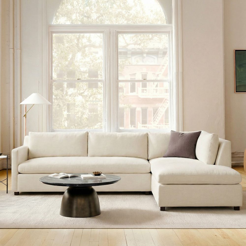 Inspired by relaxed coastal vibes, our Marin Sectional's thick, comfy cushions are the softest seat in the house. Whether you curl up or sprawl out, its oversized frame is built for some serious lounging.