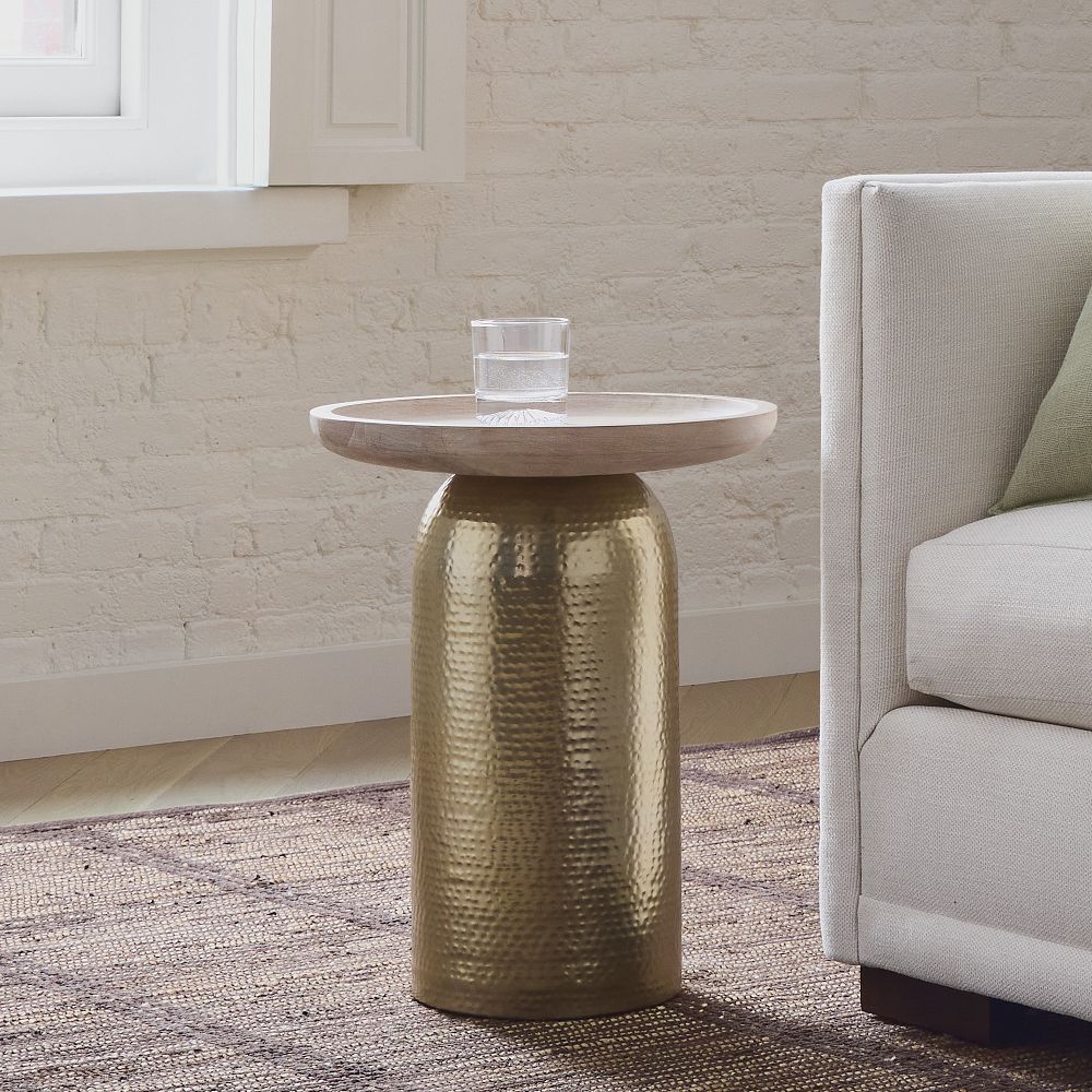 | Miri 20" Side Table, Cerused White , Hammered Champagne Bronze |