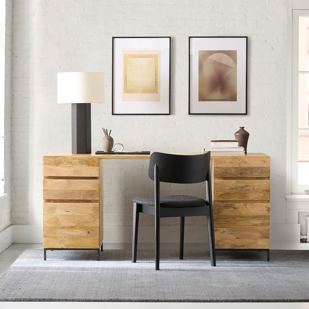 Made from richly-grained solid mango wood and lofted on blackened metal legs, our Industrial Modular Desk combines form, function and versatility. It comes with two attached box file units—store letter and legal files in the deep drawers or stash away books, magazines and other desk accessories.