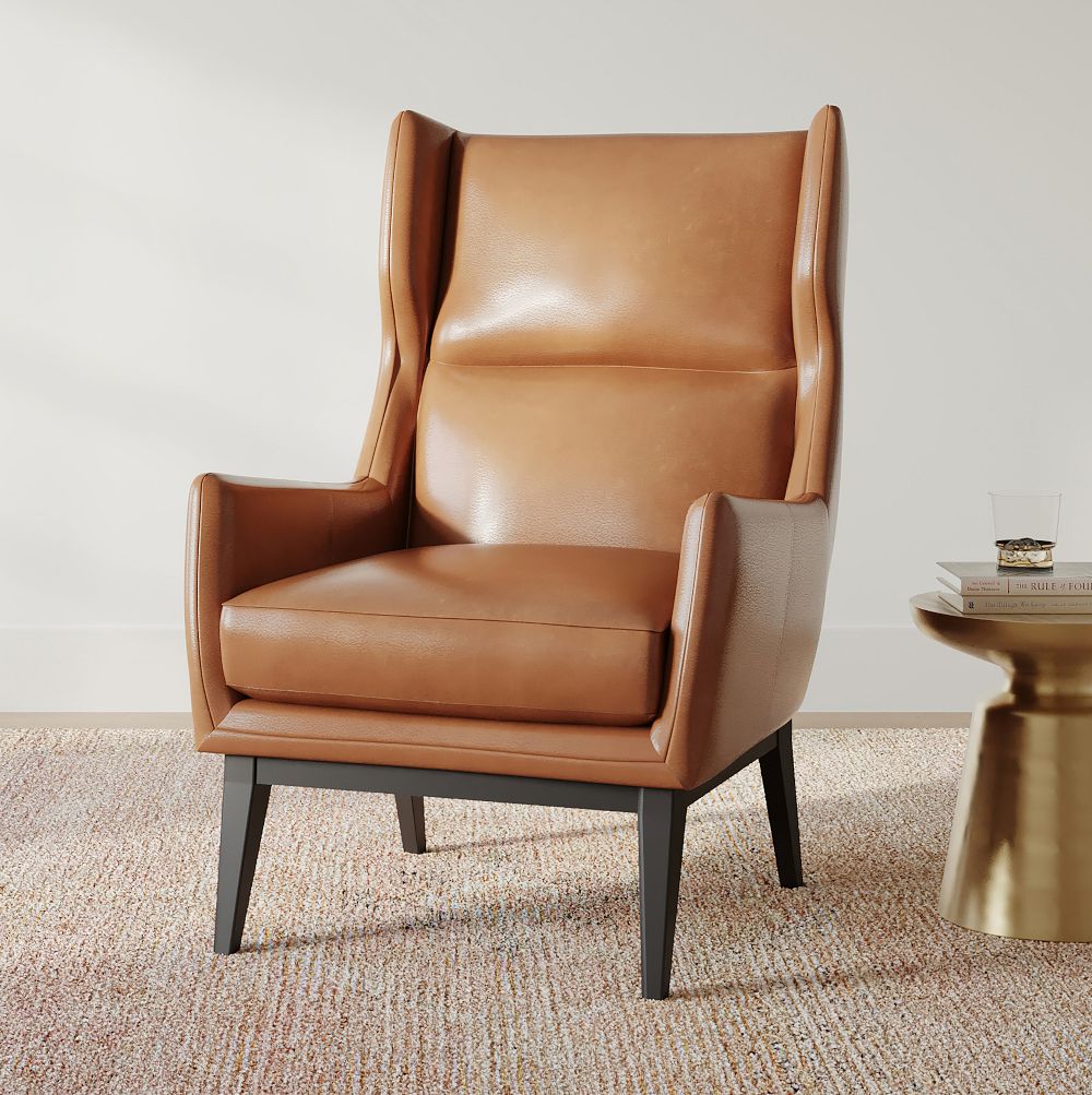 The Ryder Chair was designed with lounging in mind. Whether reading a book or watching a show, its plush cushioning, sloped arms and subtle wingback top create a cocoon just for you. It's durable too, thanks to its top-grain leather upholstery and a sturdy, contract-grade frame.