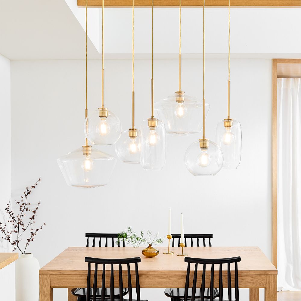 Create lighting with a custom feel with our Sculptural Glass collection. This 7-light chandelier mixes shapes and sizes to get a glowing review in any space.