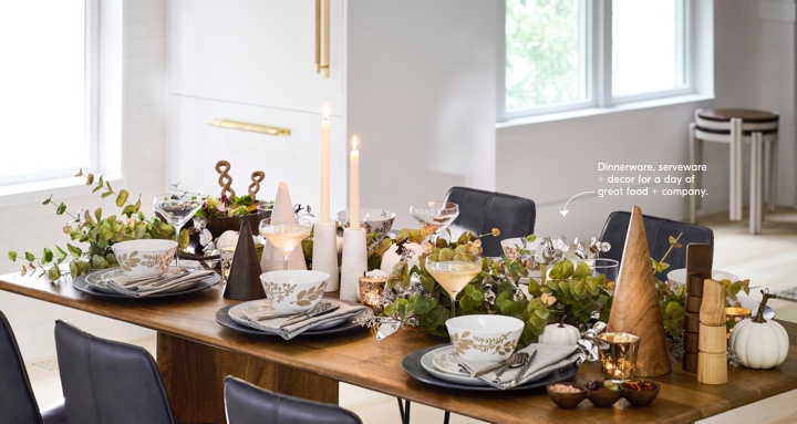 - Complete your tablescape with centerpiece bowls, candleholders, and botanicals for a modern, inviting look.